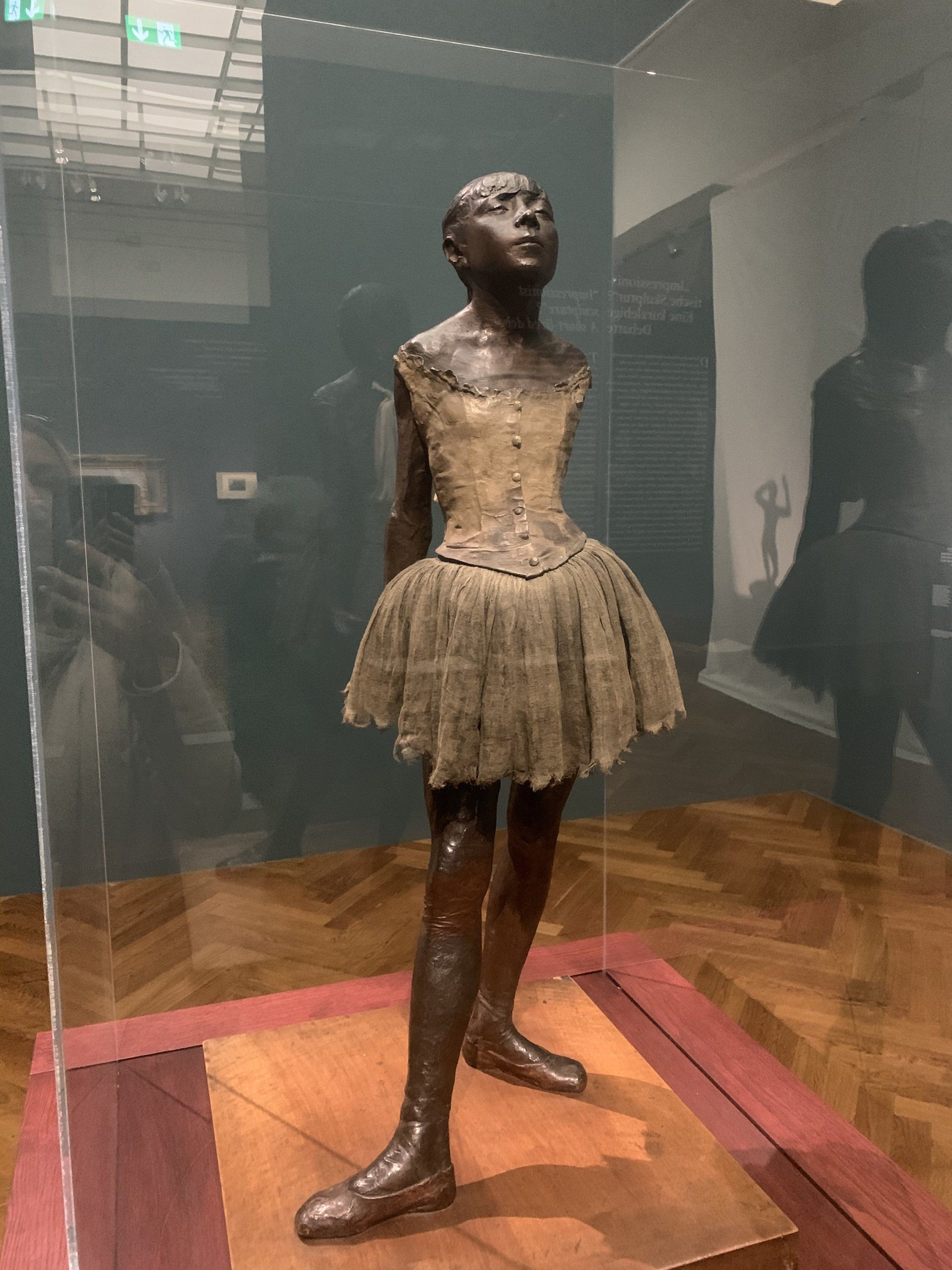 -Een uitzondering op de prominente rol van brons was het baanbrekende werk Little Dancer of Fourteen Years van Edgar Degas, dat oorspronkelijk werd getoond als ruwe was, gekleed in echte kleren en met een pruik van echt mensenhaar